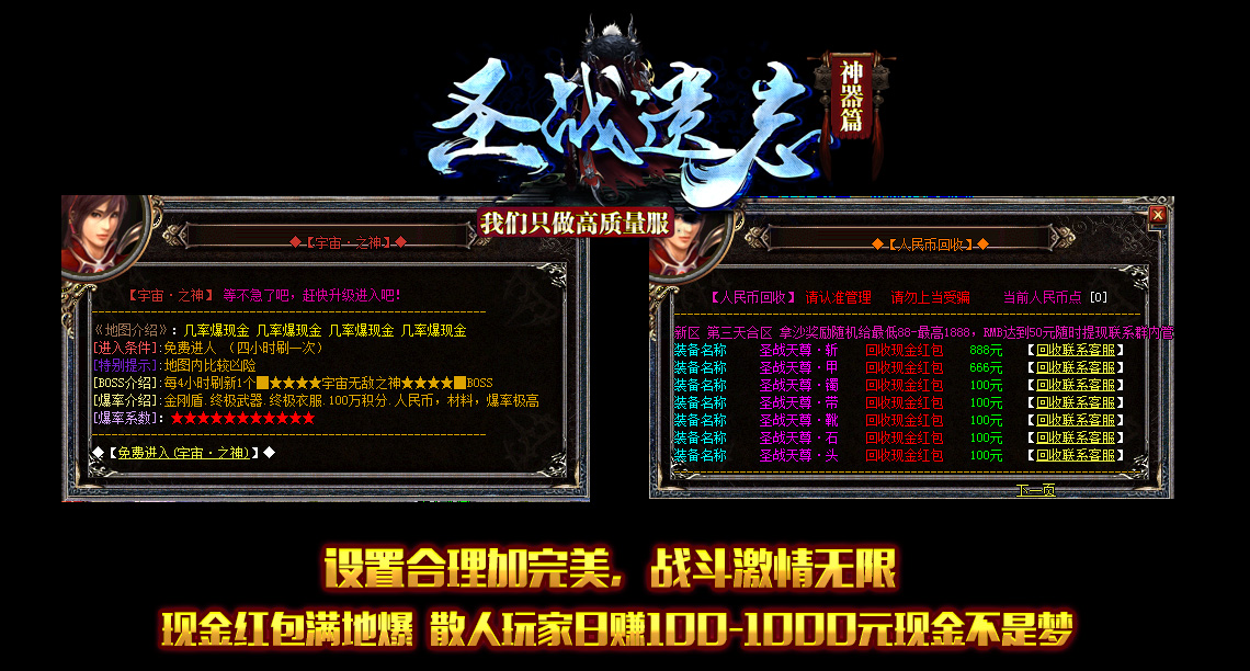 2019遗忘神器圣战新篇,花小钱玩大激情,装备狂爆,光柱满屏,长久稳定口碑竭知,充值无任何比例